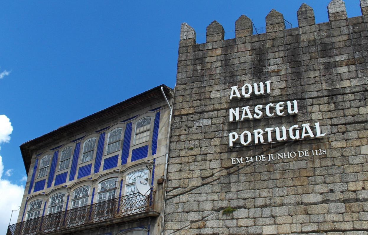 diz "AQUI NASCEU PORTUGAL", que não seja o facto histórico de Guimarães